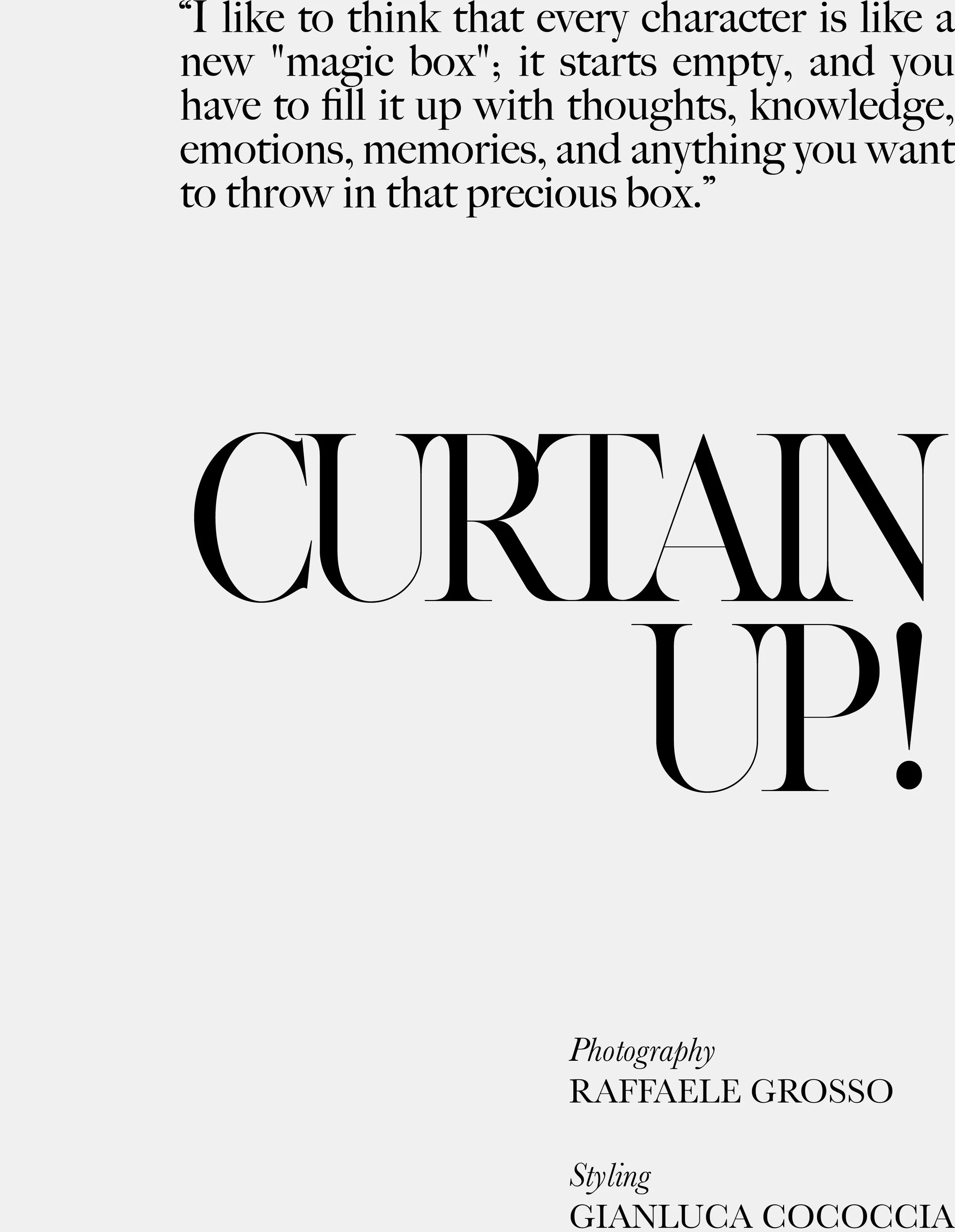 DP __ There isn't a perfect recipe for me. I get immediately curious about who I will play: extensive research is an excellent start. To be effective, you have to be curious about the subject. And if you're interested in something, you automatically want to go deeper and deeper and know more. I like to think that every character is like a new "magic box;" it starts empty, and you have to fill it up with thoughts, knowledge, emotions, memories, and anything you want to throw in that precious box. It's a long process, but the more you create and put in that box, the more material you'll have available to reach out to when it comes.